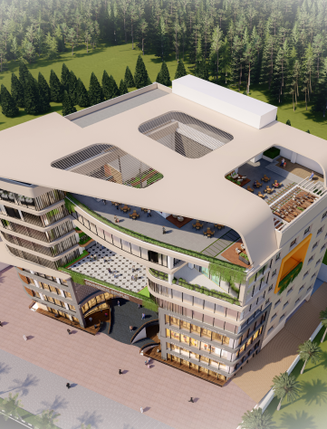 The commercial complex in Ranchi stands out with its unique fluid-inspired architecture, creating a distinctive identity in the city.